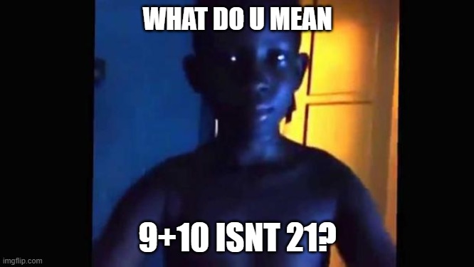 The meme originates from a 2013 Vine video where a person behind the camera asks a young boy, "What's 9 + 10?". The boy confidently, and in a distinctive voice, replies "21!". The person then calls him "stupid," to which the boy responds, "No I'm not, you stupid!".